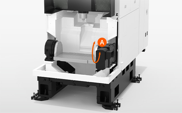 A 轴旋转工作台可在任意角度进行分度。通过一次装夹即可对顶面、侧面和倾斜面进行加工,从而提高了生产效率。